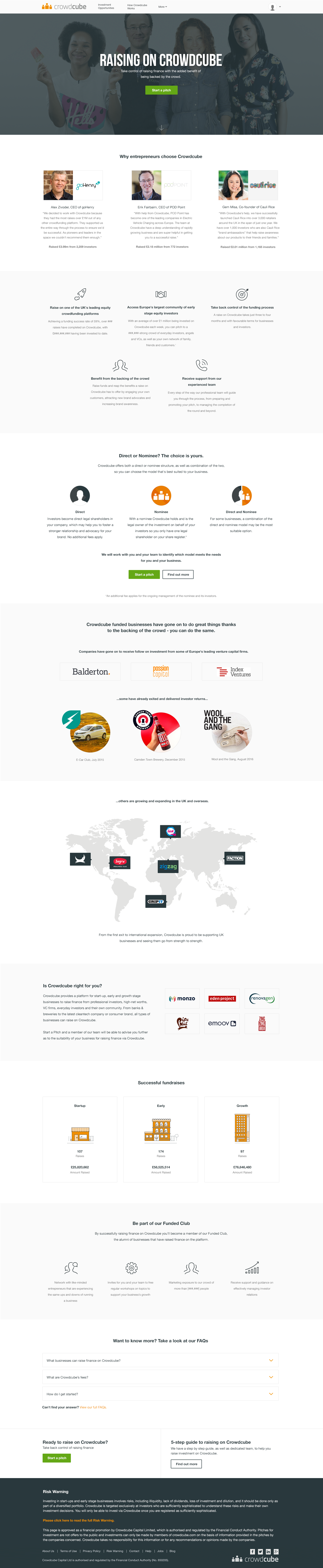 Using data, we removed unnecessary elements from the old page and added a modern look and feel to the new page, making sure the flow was intuitive for entrepreneurs looking to find out more about raising finance. Illustrations and call out boxes were used to emphasise points on the page.