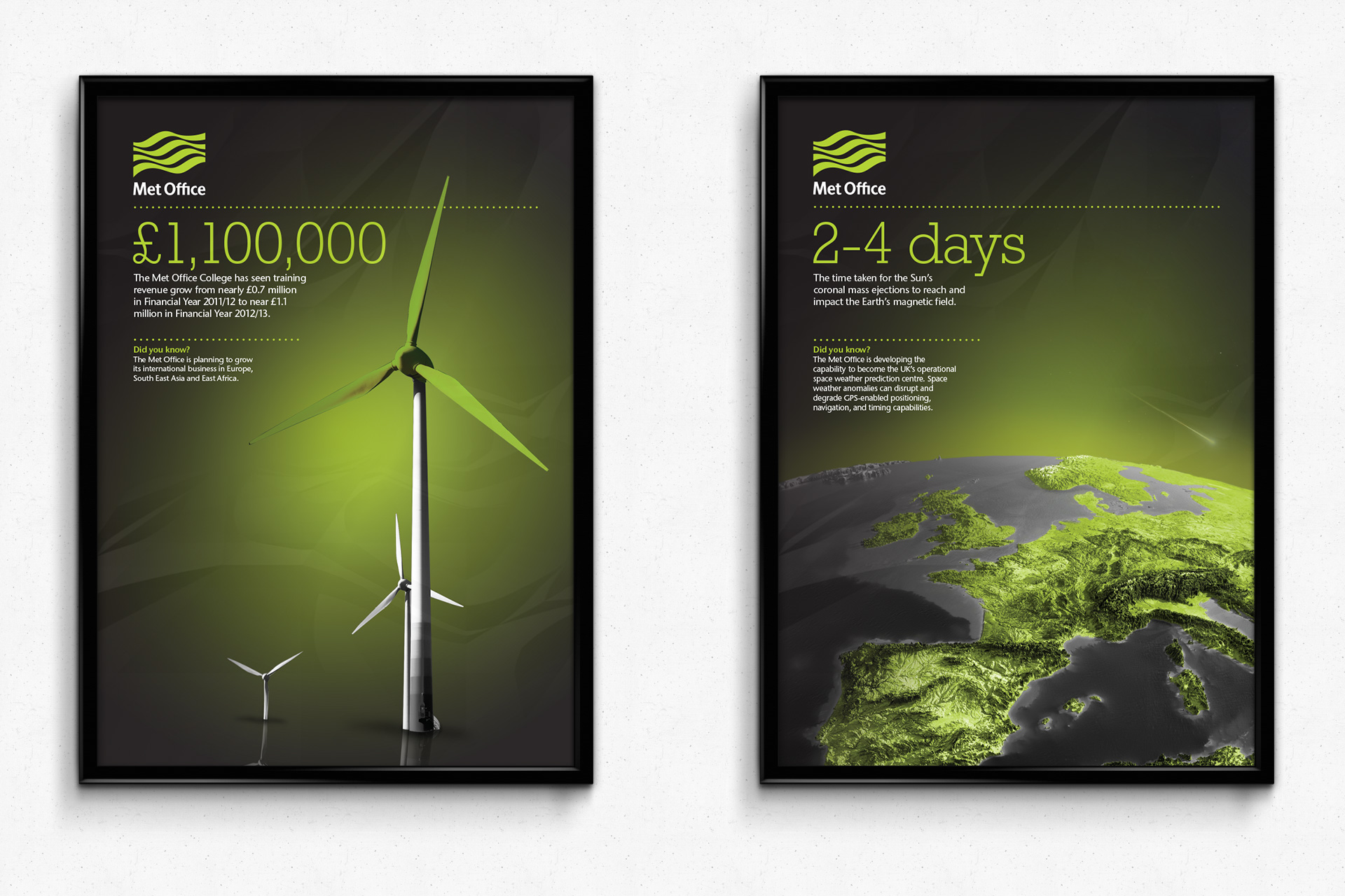 Whilst at the Met Office from 2013 – 2015 I helped to take care of the branding, including updating the typography, assets and colour palette. I created event and sales material, including pull up banners, billboard advertisements, digital adverts and brochures. When the app was being updated I modernised the iconography to keep inline with the updated clean look and I helped to support social media with infographics and digital adverts.